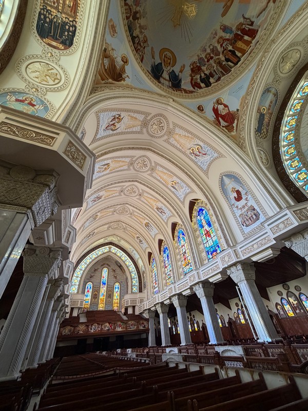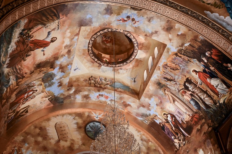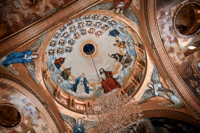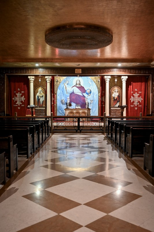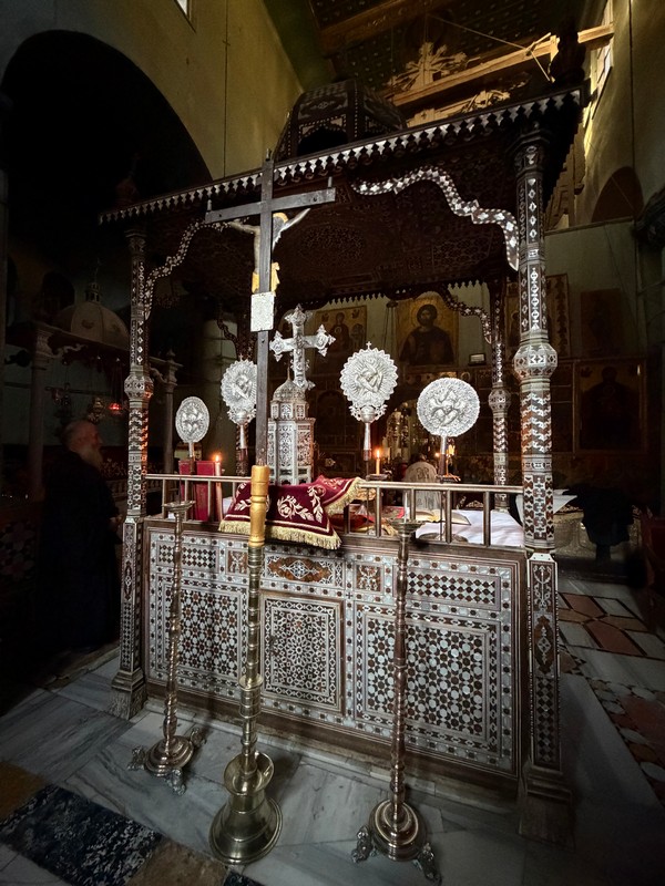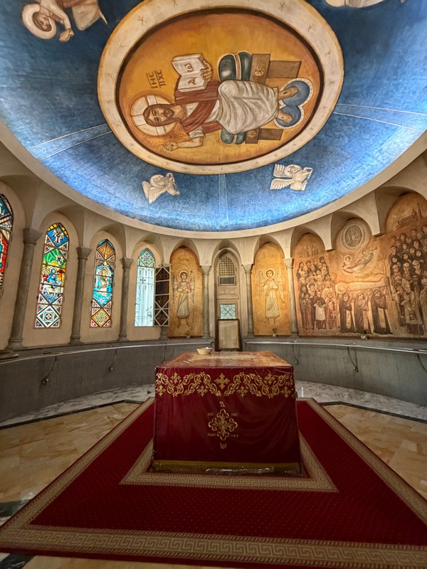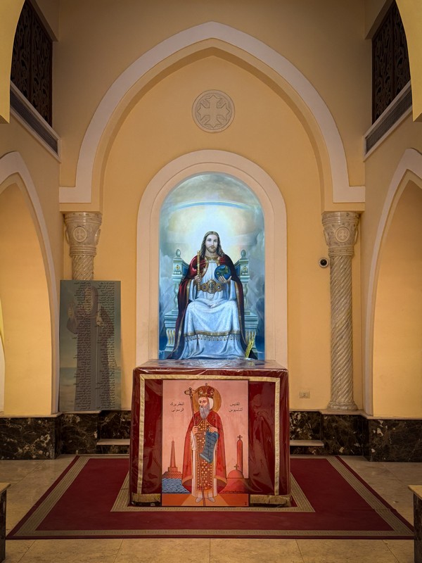 Двухэтажный величественный и, как нам показалось, несколько перегруженный живописью и декором собор, как и соприкосновение с одной из древнейших Церквей на планете, не оставил нас равнодушными. По словам экскурсовода церковная жизнь здесь не ограничивается только молитвой – храм служит местом притяжения, общения и взаимопомощи для всех членов общины. В частности, этим вечером (как, впрочем, и в другие четверги года: пятница для мусульман является священным днем, выходные в Египте – это пятница и суббота) внутри церковного двор можно было бы увидеть порядка трехсот человек, большинство из которых – дети.