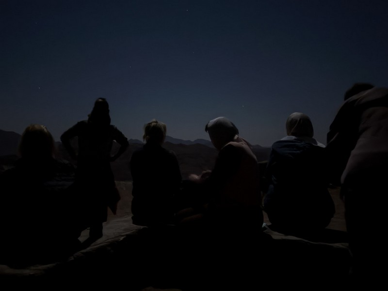Третий день паломничества на Синай для нашей группы начался спозаранку (и плавно перетек в четвертый, но об этом чуть позже) – Утреня и Литургия в монастыре святой Екатерины начинаются в 5 утра. Молитвы Божественной литургии в этот день звучали как на греческом языке, так и на церковнославянском, поскольку отец Григорий принимал непосредственное участие в богослужении. После причастия святых Христовых Тайн и утренней трапезы малая часть нашей группы отправилась каменистыми тропами вглубь пустыни, чтобы посетить келию преподобного Иоанна Лествичника. Путешествие в три километра оказалось не из легких и было сопряжено с различного рода сложностями, незнакомыми жителям цветущих равнинных северных земель… Но в полном составе благополучно добравшись до пещеры преподобного Иоанна, паломники послужили молебен святому, побыли немного в его предельно аскетичном жилище и отправились обратно «долиною смертной тени» (Пс. 22:4) – сквозь безжизненную тишину величественных скал и молчаливых камней, чтобы посетить вечернее богослужение, приложиться к мощам святой великомученицы Екатерины и набраться сил перед кульминационным событием всего паломничества, которое предстояло им всем грядущей ночью.