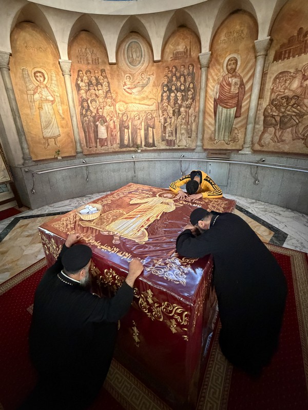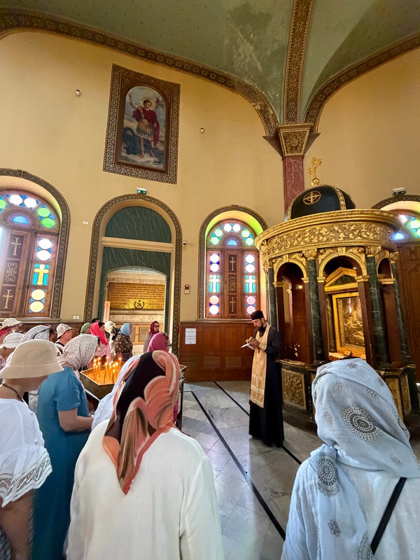 Через день наши паломницы, набравшись сил после ночной Литургии на вершине, поздно вечером выехали на заказном автобусе в северно-западном направлении, чтобы преодолеть чуть более пятисот километров и рано утром оказаться в столице Египта. Программа была насыщенной, передвигаться приходилось стремительно: начали с посещения Старого города, где расположен храм великомученика Георгия, в котором покоится частица его честных мощей, после чего переместились в храм, построенный на месте колодца, из которого по Преданию Святое семейство черпало воду во время своего бегства в Египет. Следующим пунктом остановки стал величественный кафедральный собор Коптской Церкви, построенный в 1968 году, в котором покоряться честные мощи святого апостола Марка и святителя Афанасия Великого.