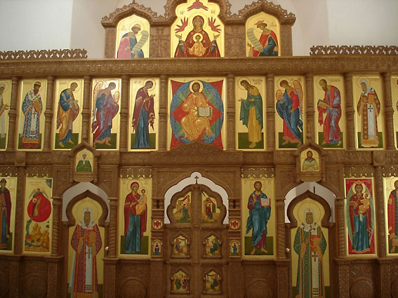 ряд икон в третьем ярусе иконостаса, в центре которого находятся три иконы деисиса, а далее по обеим сторонам симметрично расположены иконы архангелов, апостолов, святителей и мучеников. |