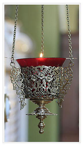 (греч. «светильник») – небольшой сосуд с фитилем, наполненный маслом, который возжигается перед иконами, мощами и в определенных местах храма – на престоле, жертвеннике и т.д. Свет лампады есть видимое отображение незримого Божественного Света, поэтому зажигать ее следует благоговейно и с молитвой. |
