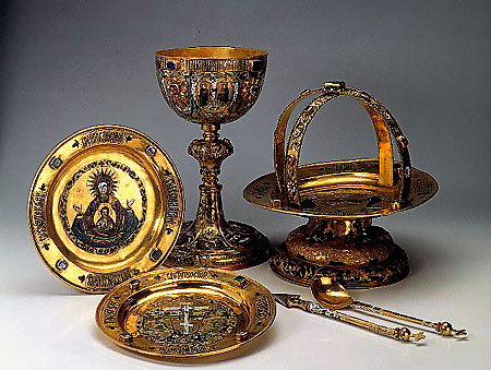 armulauakarikas ja diskos (jalaga armulauataldrik), mida kasutatakse Liturgia teenimisel, aga samuti anumad, milles hoitakse Pühasid Ande (Andide laegas) ja mürri (mürrilaegas). |